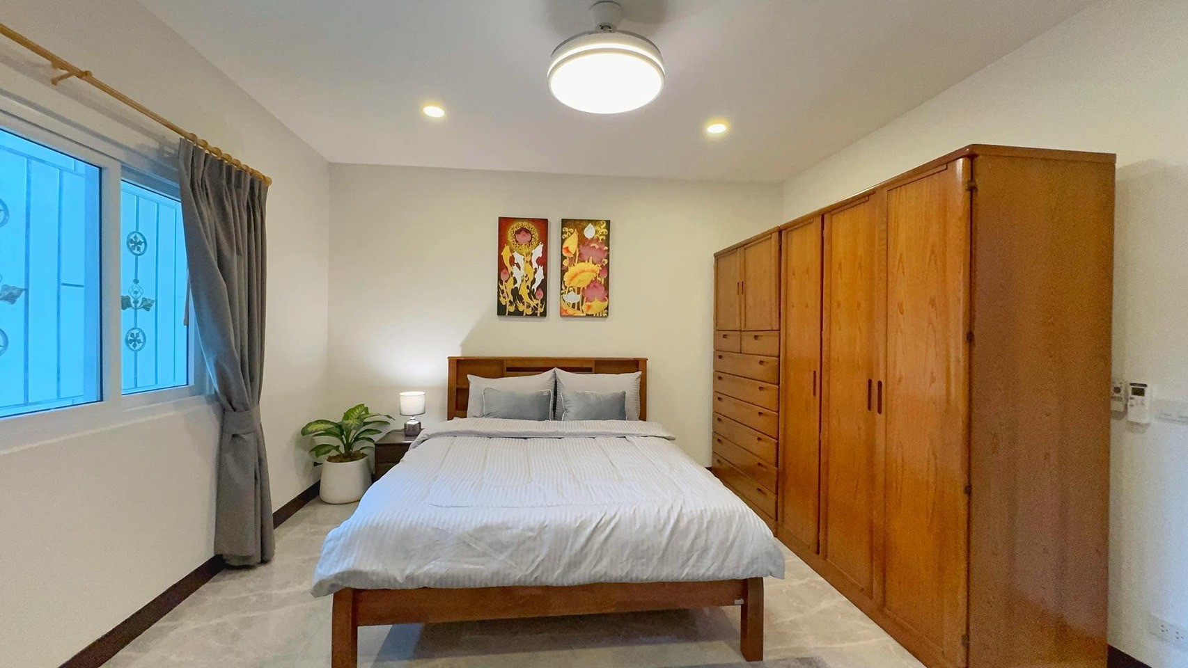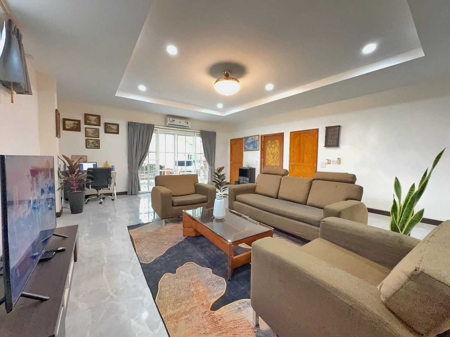 Pet-friendly 3-bedroom, 3-bathroom standalone house for rent in Naklua, Pattaya. Fully furnished and ready to move in, just 5 minutes from Wongamat Beach and 7 minutes from Terminal 21 and Bangkok Hospital Pattaya.